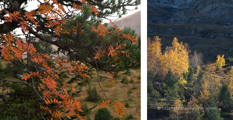 Nie sind die Farben üppiger als zu dieser Jahreszeit. Reife Farben in allen vorstellbaren Schattierungen von Rot, Orange und Gelb. Opulent und herzerwärmend leuchtend, tauchen sie Bergseiten und Täler in eine Symphonie der Farben.