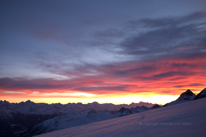 Diese Bilder habe ich schon heute Morgen im Kopf gehabt, als ich in Spiez in den Lötschberger eingestiegen bin. So geht es mir oft. Ich stelle mir die Bilder schon lange zum Voraus vor, gehe mit ihnen schwanger und dann, an einem bestimmten Tag, zu einer bestimmten Zeit materialisieren sie sich. Oft sind es nur kurze Zeitfenster die sich öffnen. Doch diese gehören zweifelslos zu den Höhenpunkten meiner Bergfotografie!