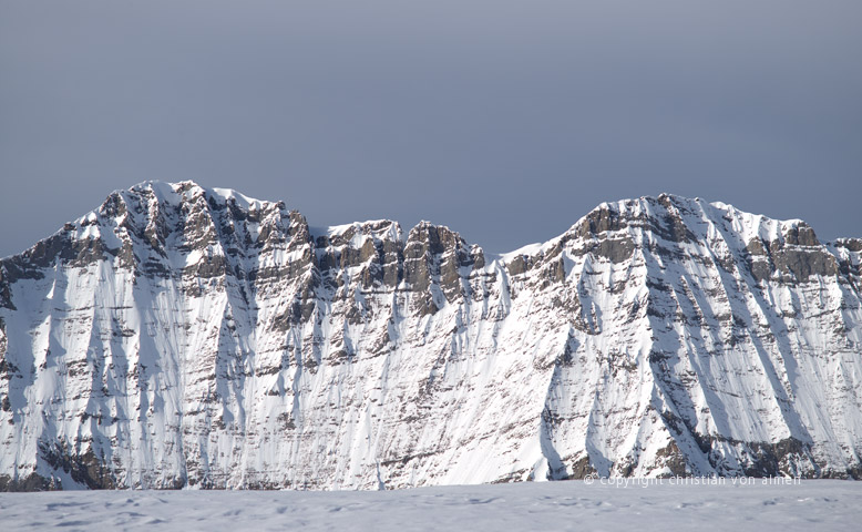 Wie ich so einen Ski um den anderen nach vorne schiebe, den Körper zum leichten Rhythmus der Bewegungen hin und her wiege, schweifen meine Gedanken zurück zu der Hockenhornbahn und deren Auswirkungen auf die Laucherenalp. Der Anblick der vielen „willkürlich“ verstreuten Zweitwohnungshäuschen und Häusern ist alles andere als schön. Bei manchen Häuschen - ob das die billigst gebauten sind? - sind die Erdgeschosse sogar aus Beton. Erinnerungen an die Phantasie- und Lieblosigkeit von rein funktionalen Wohnsilo-Renditebauten im Mittelland werden da wach. Wie hübsch sähen hier doch vier oder fünf kompakte Stafel-Siedelungen aus die sich, so wie früher, an die Landschaft anschmiegten, gebaut mit den ortstypischen Baumaterialien. Die Laucherenalp wäre weltberühmt geworden - mit dem entsprechenden wirtschaftlichen Erfolg.